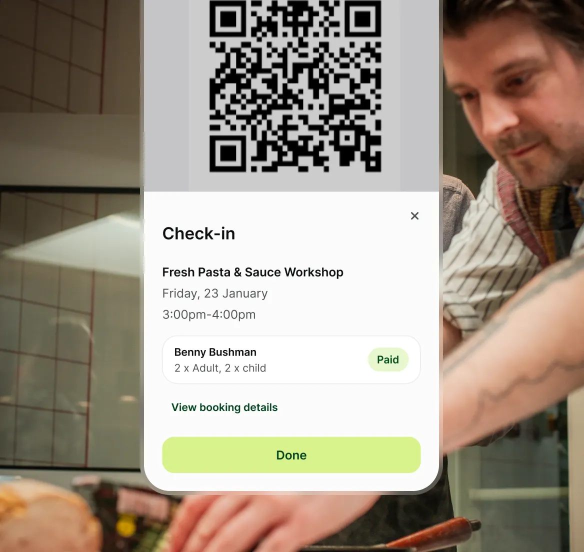 Collect allergies, dietary requirements, and other details at the point of booking — not in a panicked email the night before. Guests fill in exactly what you need to know, and you can see it all in one place when you're prepping.