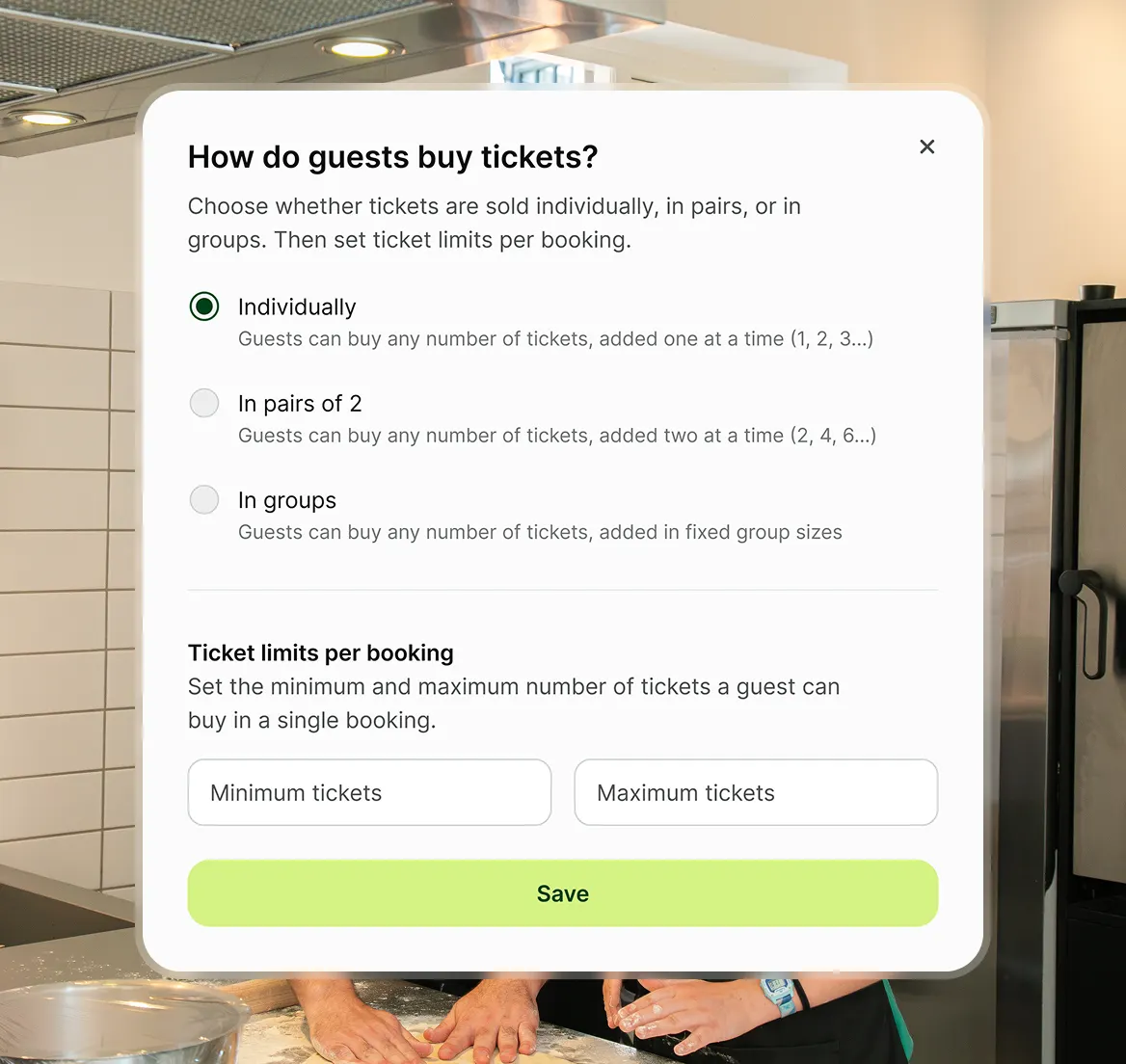 Offer private classes for friend groups, corporate team-building, or birthday celebrations. Set up group tickets so the whole party books at once, without piecing together individual bookings or managing group emails.