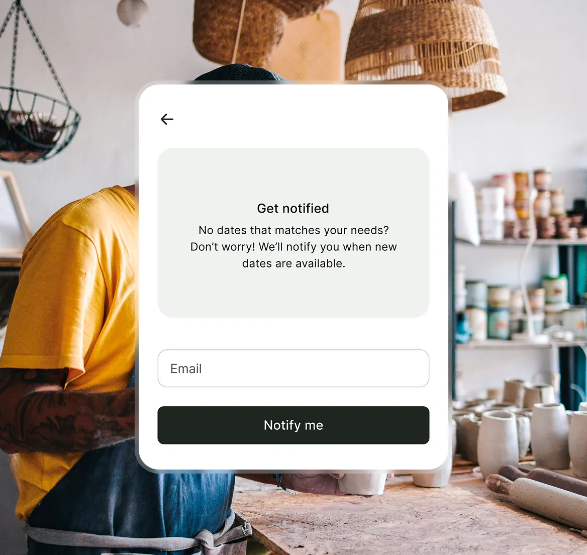 Is this their first time at a wheel, or have they been throwing for years? Do they need left-handed tools? Collect skill level, experience, and special requirements right when they book – so you can prep the right materials and tailor the session.