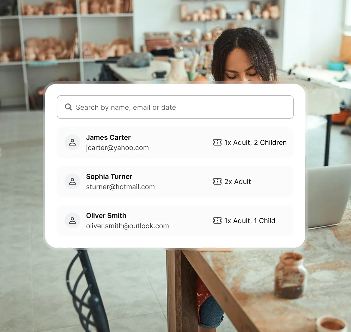 One system to fill your workshops, manage your guests, and grow your business – so you can spend more time in the studio.